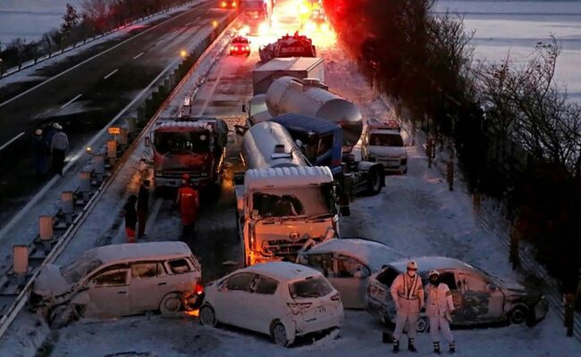 حادث مروري ضخم يوقع قتيلًا وعشرات المصابين في اليابان