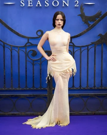 اختارت Ortega فستاناً مطاطياً مستوحى من مسلسل “Wednesday”، لتبدو كأفعى أنيقة على السجادة الحمراء.