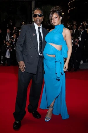 حضرّت مهرجان كان بفستان أزرق مع عقدة تلف حول بطنها بعد إعلان حملها في Met Gala، لتكون إطلالة أنيقة ومميزة.