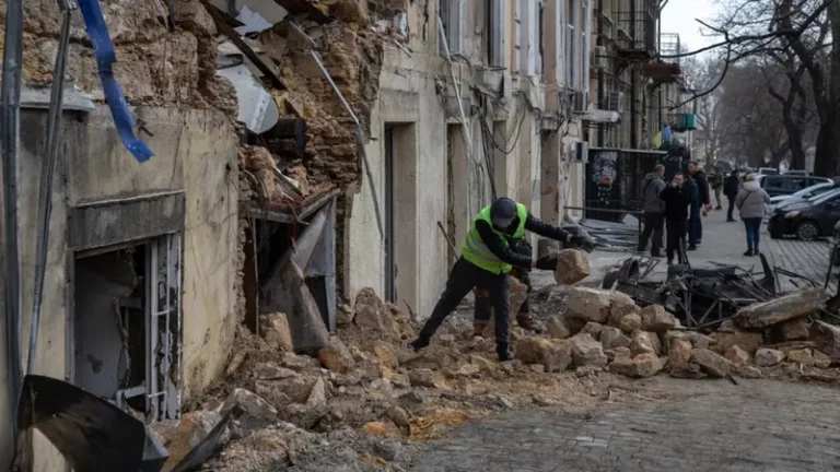أضرار خلفها قصف روسي على مدينة أوديسا الأوكرانية في صورة التطقت أمس الجمعة