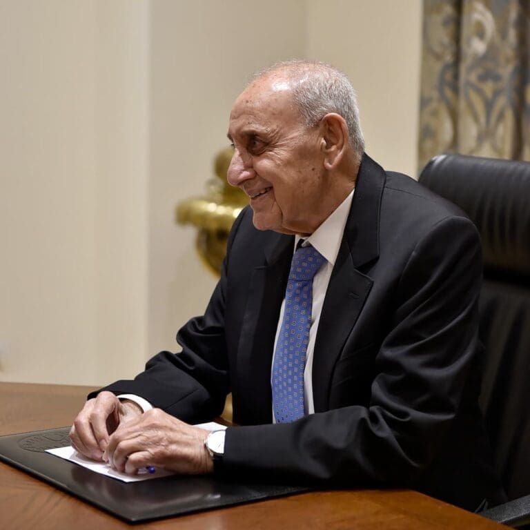 شدد رئيس مجلس النواب اللبناني نبيه بري على أن لبنان لن يقبل تحت أي ظرف من الظروف ومهما بلغت الضغوطات التخلي عن أي شبر من أرضه أو ذرة من ترابه أو حق من حقوقه السيادية وسوف يلجأ لكل الوسائل المتاحة لحماية هذه الحقوق وصونها وتحرير ما تبقى من أرضنا من الإحتلال الاسرائيلي .