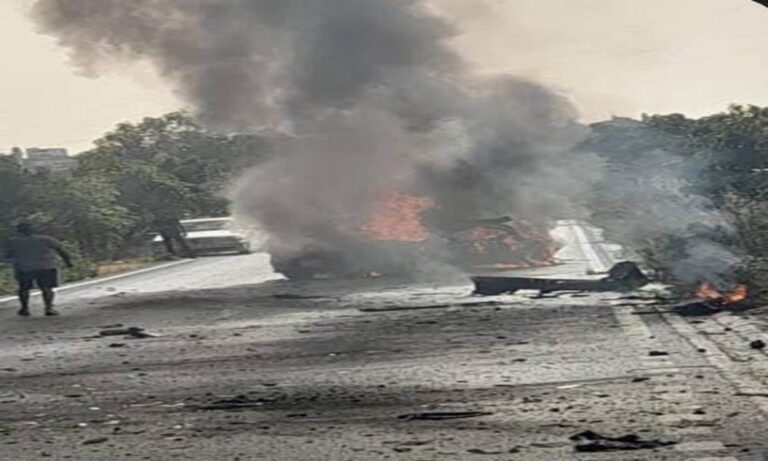 شنت طائرة مسيّرة إسرائيلية غارة اليوم الاثنين استهدفت سيارة من نوع رابيد على طريق عام بلدة بريقع &#٨٢١١; قضاء النبطية.