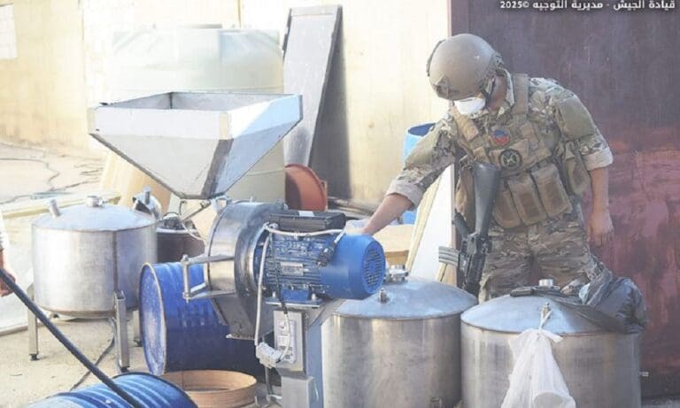 أعلنت قيادة الجيش – مديرية التوجيه أن “بتاريخ ٢٦ /٨/ ٢٠٢٥، وضمن إطار مكافحة المخدرات وملاحقة العصابات التي تعمل على الاتجار بها وترويجها، دهمت وحدة من الجيش تؤازرها دورية من مديرية المخابرات منازل مطلوبين في بلدة بوداي – بعلبك وضبطت معملًا لتصنيع المخدرات وكمية كبيرة من المواد الأولية المستخدمة في تصنيعها”.