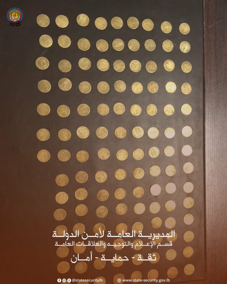 متابعةً للجهود التي تبذلها المديرية العامة لأمن الدولة لحماية المواطنين من أعمال الغش ، أوقفت دورية من مديرية الشمال الإقليمية – مكتب البترون بتاريخ ٢١/١/٢٠٢٦، السوري (م. م.) في بلدة كفور العربي، أثناء محاولته الفرار إلى سوريا، بعد إقدامه بالاشتراك مع شخص آخر متوار ، على بيع ١٢٠ ربع ليرة ذهبية مزيفة إلى المدعو (م. د.). وقد أُجري المقتضى القانوني بحقه بناءً لإشارة القضاء المختص.