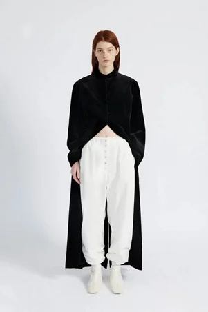 الفكرة لا تكمن في القطع نفسها، بل في طريقة تنسيقها: خامة صيفية بجانب أخرى شتوية، وملمس ناعم مقابل بنية واضحة. الأبيض الأحادي هنا يتحوّل إلى خيار ذكي لمن تبحث عن هدوء بصري مع حضور لافت.