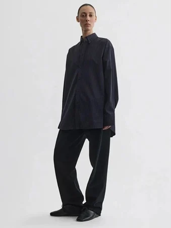 فرض الأزرق الكحلي نفسه كلون أساسي في العرض، لا كبديل تقليدي للأسود أو البني، بل كلون متكامل يمكن ارتداؤه من الرأس حتى القدمين. تدرّجاته، مع اختلاف الخامات، منحت الإطلالات عمقاً وجعلته يبدو معاصراً ومريحاً في آن واحد.