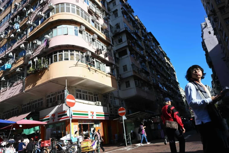 مشاة في أحد شوارع جزيرة هونغ كونغ الصينية