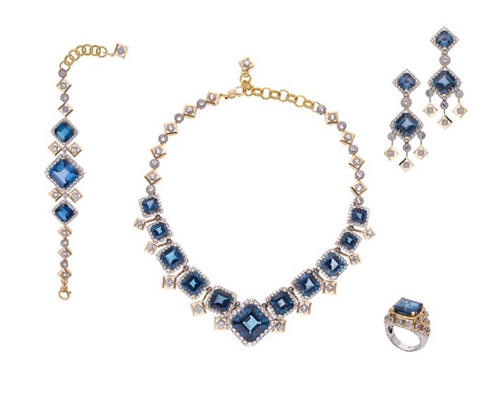 وتتزيّن الجواهر بأحجار كريمة مختارة بعناية من التوباز الأزرق اللندني، والجمشت البنفسجي، والأكوامارين، والزبرجد، وعقيق الرودوليت، والزفير، في تناغم بصري يأسر الأنظار ويجسّد شغف الدار بالجمال النادر والحرفية الأصيلة.