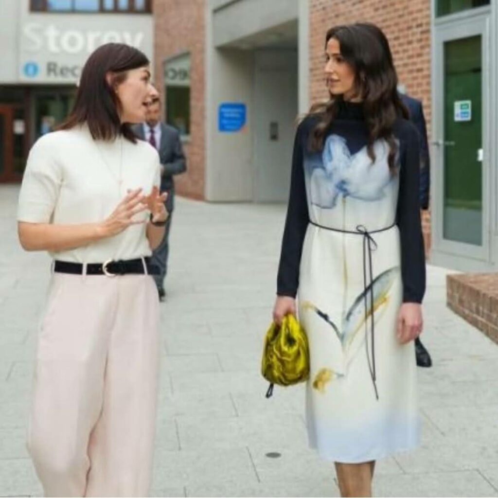 اختارت الأميرة فستانًا من دار Giada Montenapoleone، تميز بطبعات ناعمة وأقمشة حريرية خفيفة، تناسب الأجواء الهادئة للمستشفى وتعكس بساطة راقية بعيدًا عن الألوان الصاخبة أو القصّات المبالغ بها.