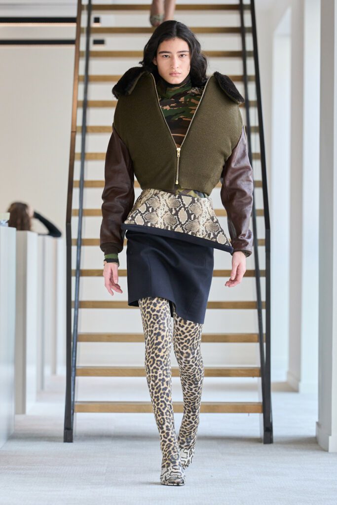تحتل النقشات مكانة بارزة هذا الموسم، حيث تتنوع بين الحيوانية والكارو والتارتان والمقلمة. إطلالة Duran Lantink اعتمدت جوارب عالية بنقشة الفهد الحيوانية، لتبرز لمسة جريئة وعصرية لمحبي الإطلالات الملفتة والمميزة.
