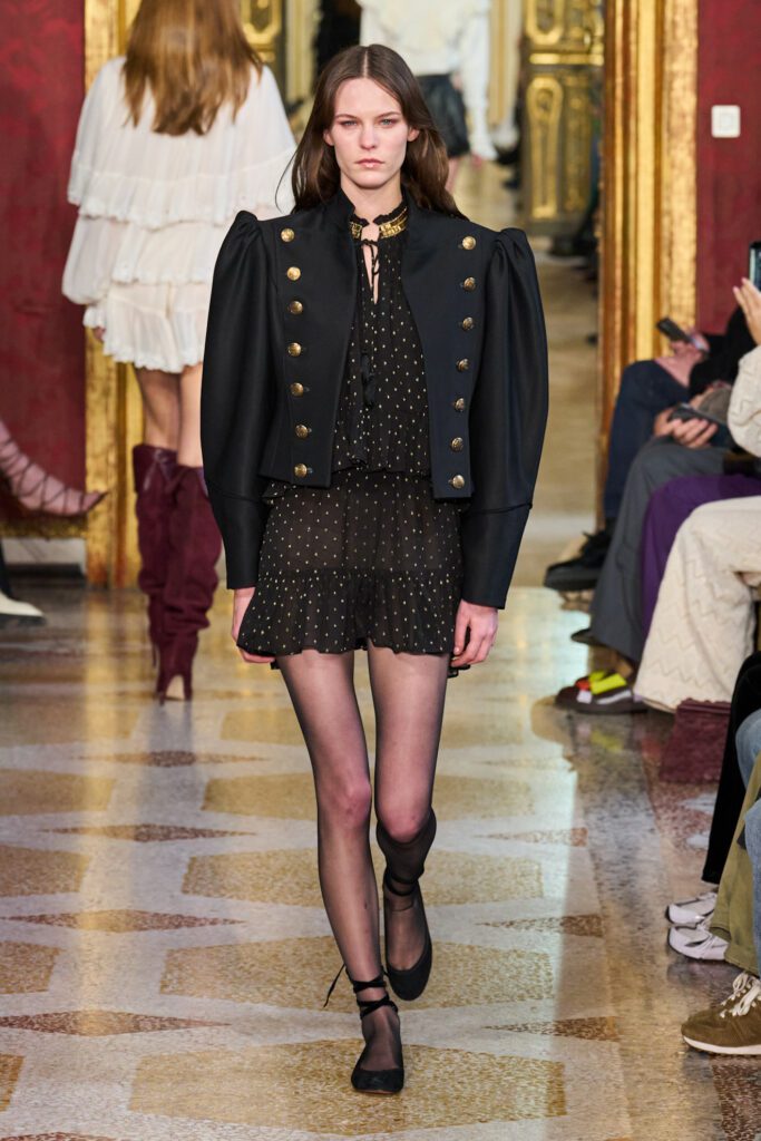 تأتي الجوارب العالية الشفافة في مقدمة صيحات هذا الشتاء، سواء بلون الجلد أو بألوان شفافة جذابة. على سبيل المثال، قدمت Blumarine إطلالة أنيقة بجوارب عالية شفافة باللون الأحمر، بينما اعتمدت Twinset على جوارب عالية شفافة بلون الجلد مع فستان قصير أسود، لتكون الخيار الأمثل للإطلالات اليومية والمسائية على حد سواء.