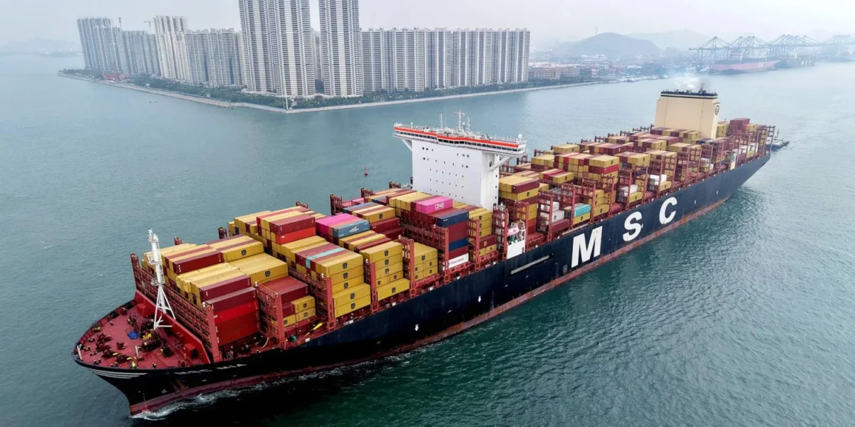 سفينة حاويات تتجه نحو ميناء تشينغداو شرق الصين