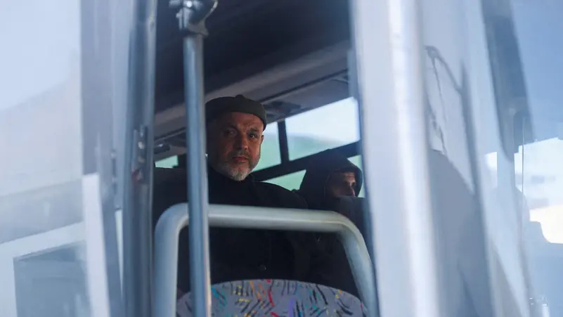 حافلة تستعد لمغادرة غزة عبر معبر رفح – خان يونس في جنوب القطاع رويترز