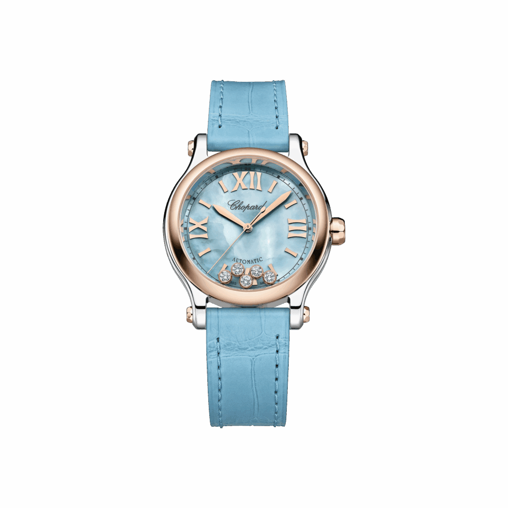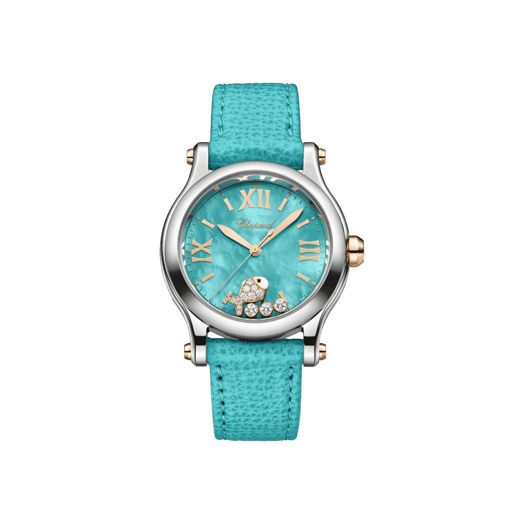 بين الأسماء التي برعت في دمج الفخامة بالمرح، تبرز دار شوبارد، وتحديدًا عبر مجموعتها الأيقونية Happy Sport. هذه الساعات ليست فقط مجوهرات فاخرة، بل قطعًا تنبض بالحياة، بفضل الماسات المتحركة داخل المينا، والألوان الصيفية المنعشة التي تتراوح بين الأزرق السماوي والوردي الباستيلي.