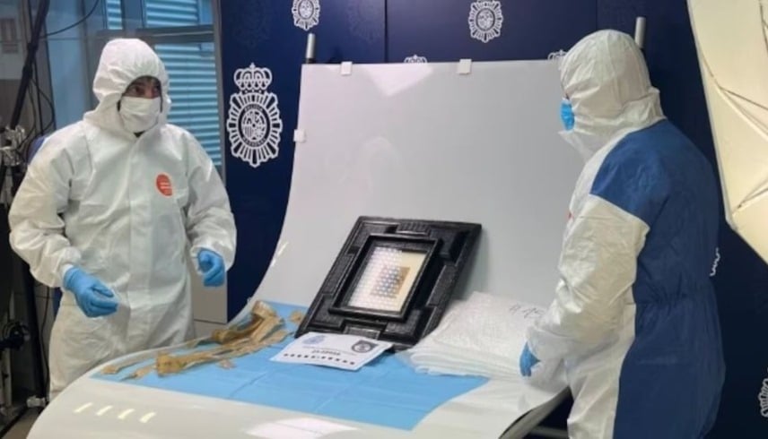 وفي منشور على منصة “إكس”، أشارت الشرطة إلى أن اللوحة ربما لم تحمل على شاحنة النقل قبل مغادرة الشحنة مدريد.