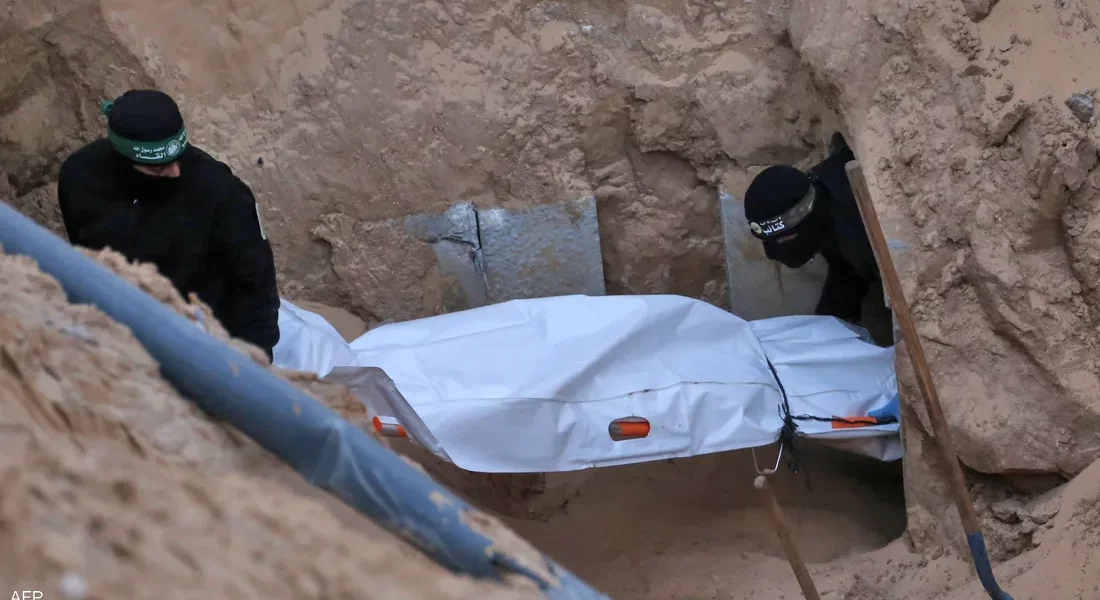 أدانت اللجنة الدولية للصليب الأحمر، الأربعاء، ما وصفته بالاستخراج «المدبّر» لرفات رهينة إسرائيلي في قطاع غزة، وذلك بعد تداول مقطع فيديو نشره الجيش الإسرائيلي، الثلاثاء، يظهر فيه عناصر من حركة حماس وهم يخرجون رفات جثة من كيس داخل مبنى، ثم يُسحب الكيس إلى حفرة كبيرة ويُدفن معظم محتواه تحت التراب.