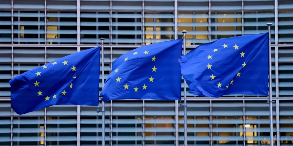 أعلام الاتحاد الأوروبي ترفرف خارج مقر المفوضية الأوروبية في بروكسل