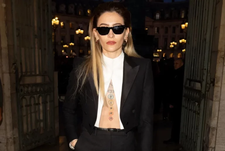 ارتدت باريس قميصاً أبيض بفتحة في منتصف الصدر، مع سترة ضيقة وبنطال أسود، وأكملت إطلالتها بحذاء أسود مدبب، حزام جلدي رفيع، وأقراط فضية دائرية. وكان شعرها الأشقر ذو الجذور البنية مصففاً للخلف، بينما أضفى مكياجها لمسة ناعمة وجذابة بظلال برونزية وأحمر شفاه أحمر، ليحقق حضوراً لافتاً على غرار ظهورها في مهرجان البندقية الماضي.