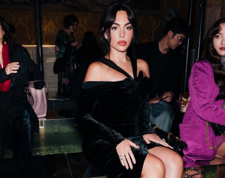 من الناحية الجمالية، اعتمدت جورجينا تسريحة ضفائر أنيقة مع غرة منسدلة من الأمام وأبرزت مكياجها اللمسات البرونزية والوردية على الخدود والشفاه، ما منحها مظهراً دافئاً وجذاباً انسجم مع أجواء العرض.