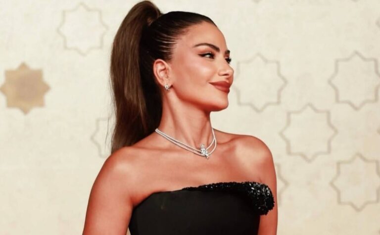 واعتمدت النجمة تسريحة ذيل حصان كلاسيكية مع شينيون عالي، ومكياج دافئ باللون البرغندي مع لمسات برونزية وأحمر شفاه قوي، ليبرز أناقتها ويكمل حضورها اللافت على السجادة الحمراء.