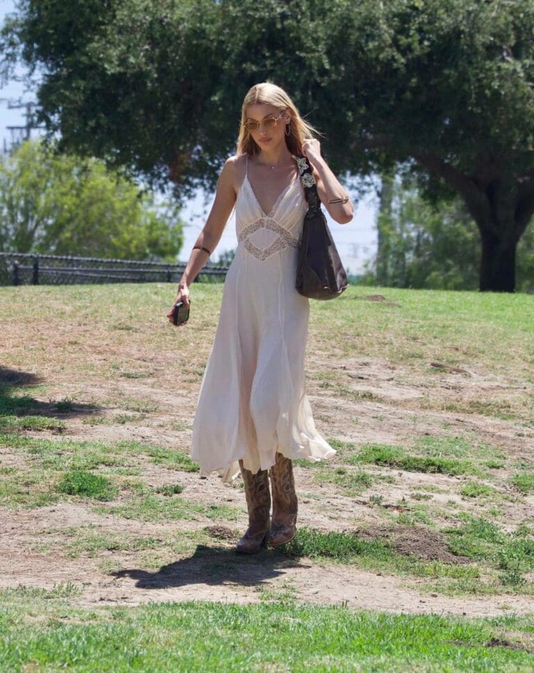 أخيراً، شوهدت حديد في حفل استقبال مولود إحدى صديقاتها في لوس أنجلوس وهي ترتدي أرقى أزياء الغرب الأميركي. أطلّت بفستان دانتيل قصير من ٨٢٢٠;مانغو٨٢٢١; Mango بسعر ١٥٠ دولاراً، يجسّد الأناقة الريفية، تكمّله صدرية كاميسول منخفضة، وألواح شفّافة، وأزرار مطوية على طول الظهر.