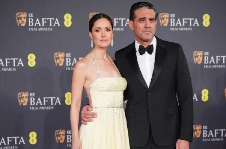 في حفل توزيع جوائز &#٨٢٢٠;بافتا&#٨٢٢١; روز بيرن لعام ٢٠٢٦، خطفت روز الأنظار بفستان شيفون أصفر من تصميم Miu Miu، بقصة ضيقة من الأعلى مكشوفة الصدر وحمالات رفيعة مرصّعة بالكريستالات الفضية، مع حزام لامع أضاف لمسة من الفخامة. الجزء السفلي جاء بقصّة الأميرات متعددة الطبقات، لتكمل الإطلالة الفخمة والرقيقة.