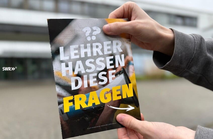 تستهدف هذه المنشورات طلاب المدارس بشكل خاص، وتحمل عنوانًا استفزازيًا هو “المعلمون يكرهون هذه الأسئلة”. ويتضمن الجانب الآخر من المنشور أسئلة ومعلومات تحاول إيهام القراء بأن الألمان أصبحوا أقلية في بلادهم، وتتطرق لقضايا حساسة مثل الاعتداءات الجنسية، ومخاوف الشباب بشأن المستقبل، ومعاشات التقاعد، والتضخم. وتقدم الحركة حلًا جذريًا لهذه المشكلات يتمثل في “إعادة التهجير”.