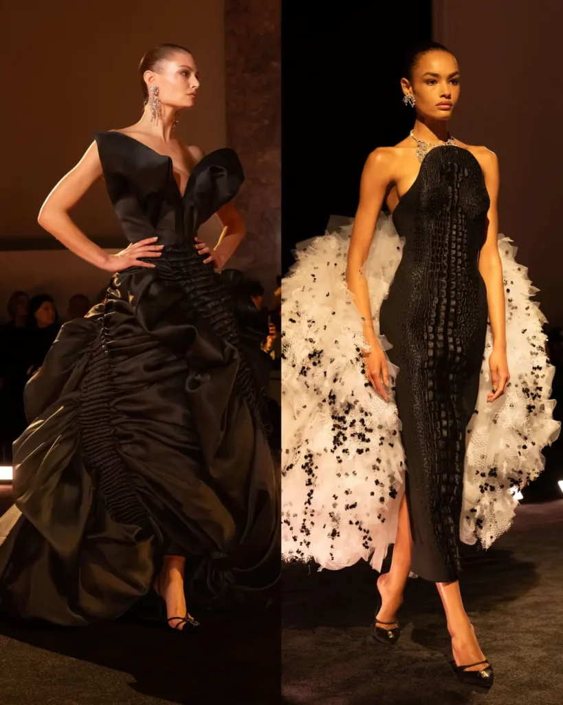 افتتحت دار سكياباريللي اليوم بعرض مديرها الإبداعي دانييل روزبيري تحت عنوان “الرهيب والرائع”، في متحف الفنون الجميلة بباريس. استلهم المصمم المجموعة من زيارته لكنيسة سيستين في روما، حيث جمعت التصاميم بين الزخارف الفنية والخطوط المبتكرة، مضيفة أبعاداً جديدة للأزياء الراقية. وصف روزبيري الأزياء بأنها دعوة للشعور والتأمل، بعيداً عن التفكير المفرط، مؤكداً أن المجموعة تمكنت من تحقيق ذلك بالكامل.