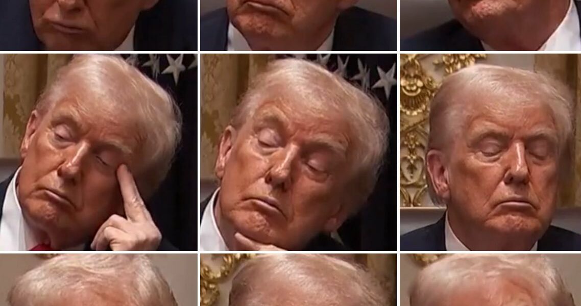 المقطع أظهر ترامب متكئًا على كرسيه، وعيناه مغمضتان، ثم يتحرك ويعتدل وينظر إلى الوزير، قبل أن تبدو عيناَه مغمضتين مرة أخرى.