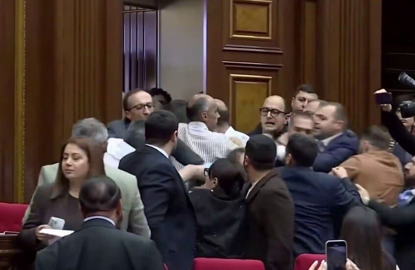 شهد البرلمان الأرميني، اليوم، عراكًا عنيفًا خلال جلسة مناقشة مشروع قرار لرفع الحصانة عن النائب أرتور سركيسيان المنتمي إلى كتلة “أرمينيا” المعارضة.