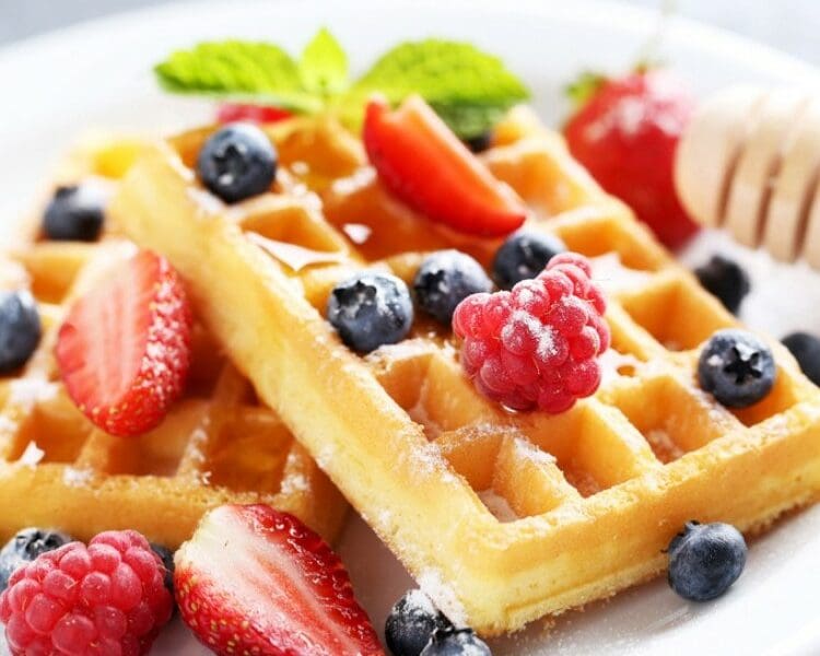 بعد إخراج الوافل من الفرن، وزّعي خليط الموز والعسل على الوجه وقدّميه دافئاً.