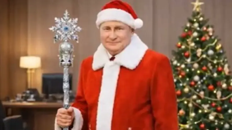 وظهر بوتين في الفيديو مرتديًا زي «سانتا كلوز»، وهو يوزع الهدايا على عدد من قادة العالم، في مشاهد حملت رسائل سياسية غير مباشرة. وكان من أبرز من تلقوا الهدايا الرئيس الصيني شي جين بينغ، حليف موسكو، إلى جانب رئيس الوزراء الهندي ناريندرا مودي الذي قُدّم له مجسم لطائرات «سوخوي» الروسية.