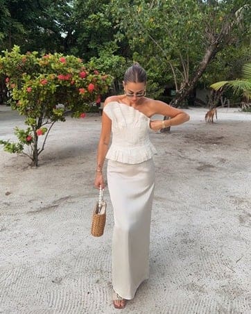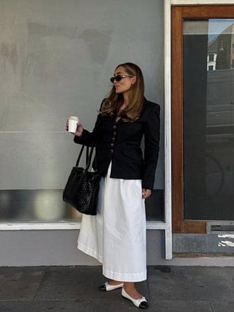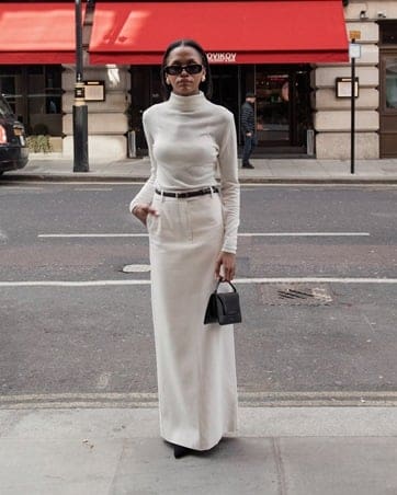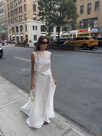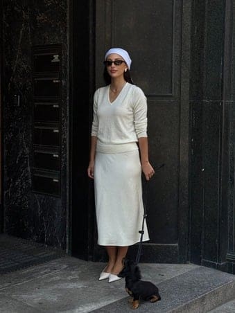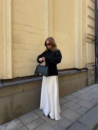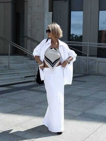 التنورة البيضاء قطعة محايدة وأساسية تتأقلم مع أي إطلالة بسهولة. فهي تبدو كاجوال عند تنسيقها مع تيشيرت قطني أو توب ملون وحذاء رياضي، وفي الوقت نفسه يمكنها التحول إلى إطلالة سهرة أنيقة مع بلوزة لامعة أو بلايزر أنيق.