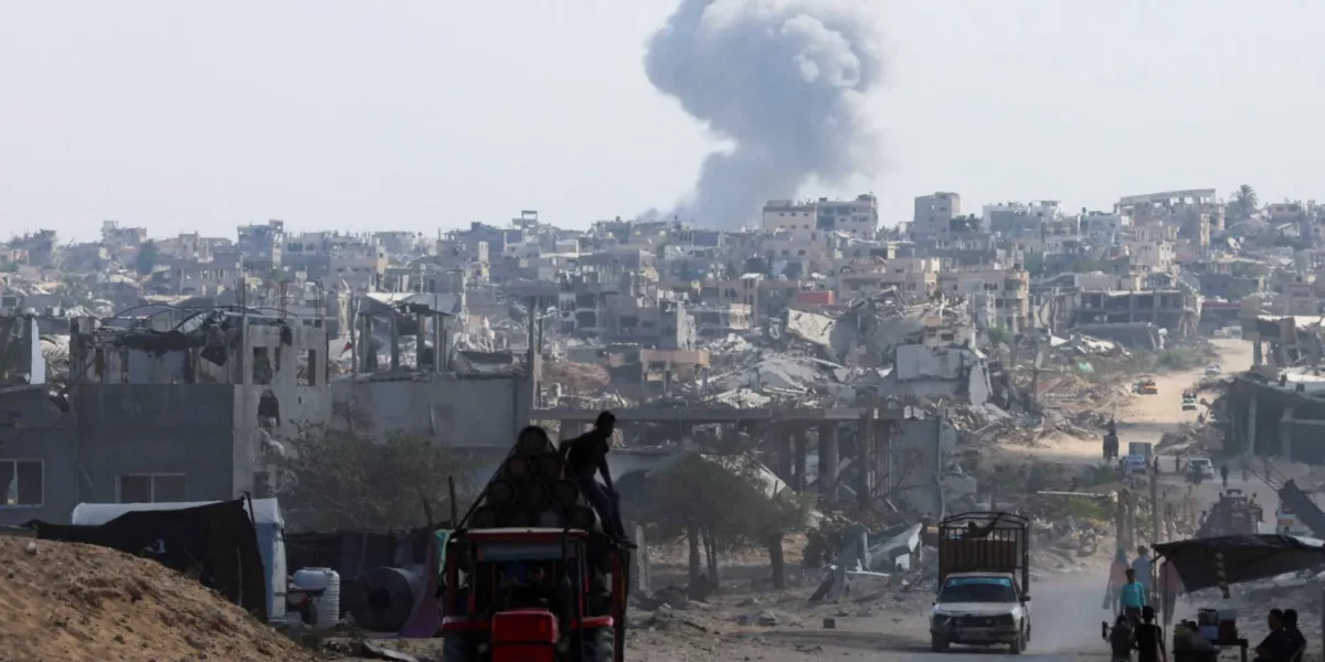تصاعد الدخان في خان يونس بجنوب قطاع غزة 30 أكتوبر 2025