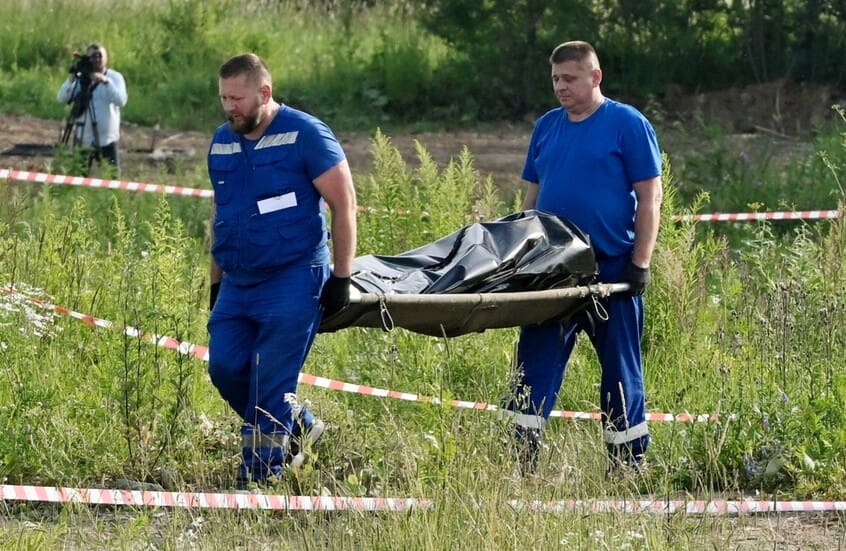 مسعفان ينقلان جثة وزير النقل السابق رومان ستاروفويت في ضواحي موسكو