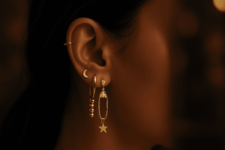 كما يلجأ كثير من المستخدمين إلى إضافة قطعة ذات طابع رمزي، مثل قرط على شكل قلب أو نجمة، بهدف إضفاء طابع شخصي على تكديس الأقراط وربط الإطلالة بقصة أو معنى خاص.