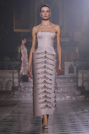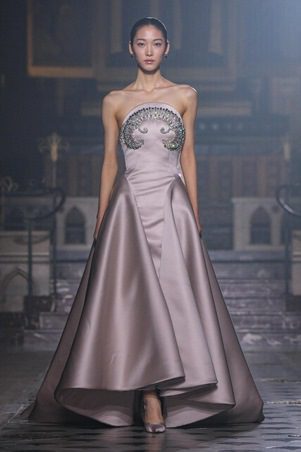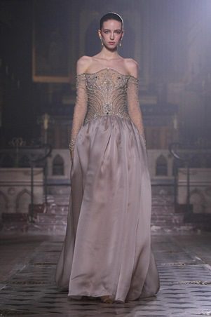 أما لوحة الألوان، فتميل إلى الدرجات الناعمة كالنيود، الوردي الباهت، والأبيض المائل إلى العاجي، مع حضور خجول لبعض الألوان الأعمق في فساتين السهرة المسائية. هذه الاختيارات اللونية تبرز القماش والتفاصيل بدل الاعتماد على اللون وحده، لتعكس رؤية جورج حبيقة للأنوثة الراقية والرصينة في موسم 2026.