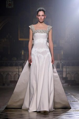 تعتمد الفساتين على قصات انسيابية تواكب الجسد دون تقييده، مع ميل هادئ نحو الخصر المحدد، صدور ناعمة، وتنانير متدفقة تتحرك بسلاسة في التصاميم الطويلة أو الأقصر الكلاسيكية. الكورسيه حاضر بصيغة مخففة، أقرب إلى الدعم الداخلي منه إلى عنصر ظاهر، ما يوازن بين الراحة والأناقة ويعكس فهمًا عميقًا لاحتياجات المرأة في الكوتور المعاصر.