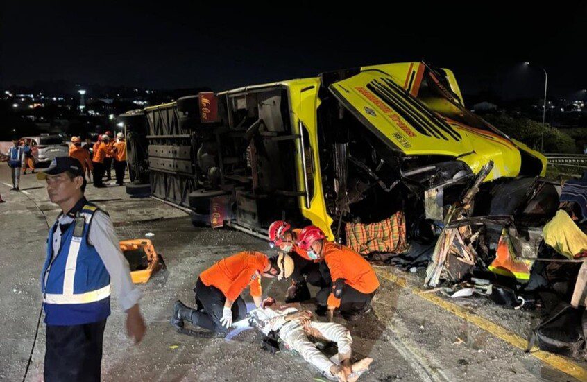 وأفاد مكتب البحث والإنقاذ في سمارانج بأن الحافلة كانت تسير بسرعة عالية عندما فقد السائق السيطرة عليها، ما أدى إلى اصطدامها بحاجز الطريق وانقلابها.