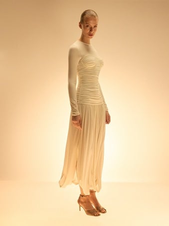 المجموعة الجديدة تعكس روح الاحتفال الناعمة، مع لمسات من الحب والجمال الكلاسيكي الذي يظل خالداً. كل قطعة تبدو وكأنها صممت لترافق أجمل لحظاتك، بخطوط انسيابية وأقمشة فاخرة تحكي لغة الأناقة الهادئة.