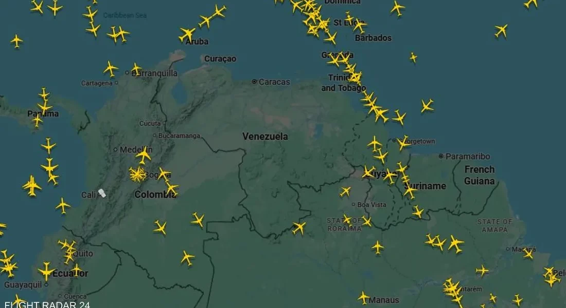 أظهرت بيانات “فلايت رادار 24” خلو الأجواء الفنزويلية بالكامل من حركة الطائرات، بعد تحذيرات أميركية من تصاعد النشاط العسكري في البلاد. وعلّقت ست شركات طيران دولية رحلاتها، في وقت تستعد فيه واشنطن لإطلاق مرحلة جديدة من العمليات ضد حكومة الرئيس نيكولاس مادورو، وسط حشد عسكري كبير في منطقة البحر الكاريبي، بما في ذلك وصول حاملة الطائرات “جيرالد آر فورد”.