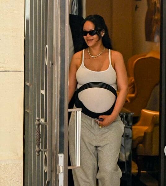 ظهرت ريهانا مرتديةً بلوزة بيضاء بسيطة وبنطلون رياضي باللون الرمادي — مظهر قد يبدو تقليديًا لأول وهلة. ولكن المفاجأة كانت في العنصر غير المتوقع: مشد خصر اختارت أن تلفّه فوق ملابسها لا تحتها، في خروج متعمّد عن المألوف.