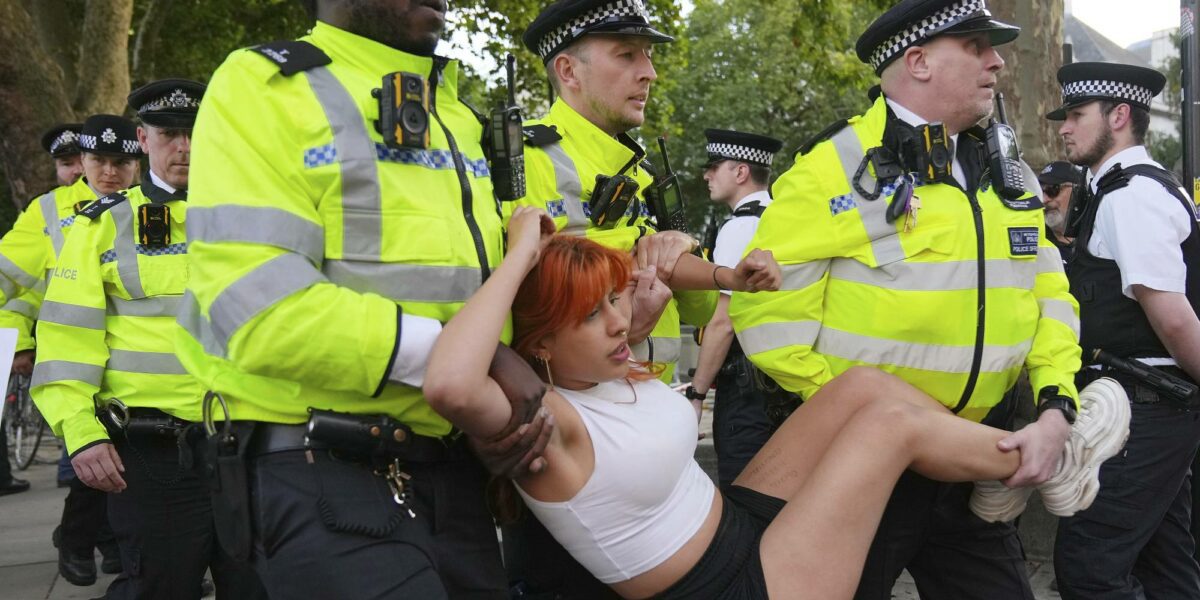 وتجمع مئات المتظاهرين أمام مبنى البرلمان البريطاني، رافعين لافتات كُتب عليها «أنا أعارض الإبادة الجماعية. أنا أدعم بالستاين أكشن»، في تحدٍ لتحذيرات السلطات. وتصاعد التوتر بين الشرطة والمشاركين الذين حاولوا منع عمليات التوقيف، فيما وُجهت إلى بعض الموقوفين تهم بالاعتداء على عناصر الشرطة.