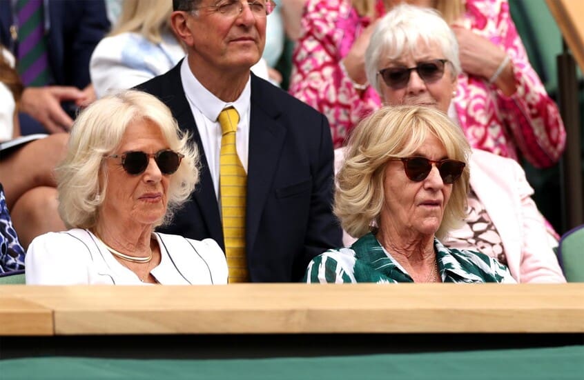 كاميلا ملكة بريطانيا وإلى جانبها شقيقتها