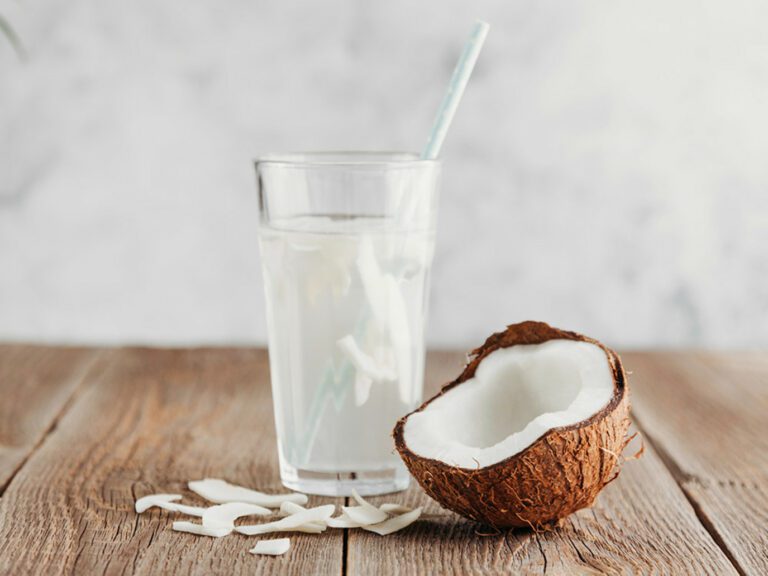 يُستخرج ماء جوز الهند من ثمار جوز الهند الخضراء الصغيرة، ويُعد مشروباً طبيعياً يحمل فوائد جمالية وصحية عديدة. فهو غني بفيتامينات B وC، إضافة إلى معادن أساسية مثل البوتاسيوم والمغنيزيوم، ما يساعد على تنقية الجسم من السموم ويعزز صفاء البشرة ونقائها.