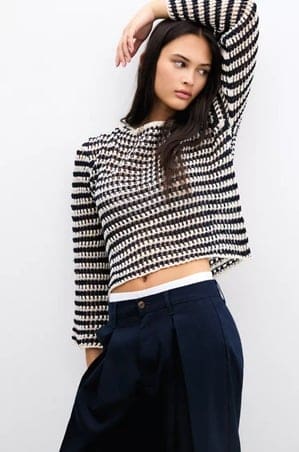 تعتبر تصاميم الكروشيه من أبرز صيحات هذا الموسم، حيث ظهرت في عدة قطع ضمن المجموعة، لتضفي لمسة من الأناقة الحرفية المثالية للشواطئ، النزهات الصيفية، وعطلات نهاية الأسبوع، وكذلك الإطلالات اليومية الصيفية البسيطة. قطعة لا بد منها في خزانتك.