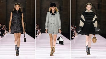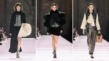 برزت الأكسسوارات في العرض بتفاصيلها الغنية، فشملت أحذية بتصميم الجوارب مزينة بالمرايا والمعادن الثمينة، وأحذية “كافاليير” بخواتم فضية، بينما أعادت الدار تقديم حقيبة “ألما” الشهيرة بزخارف مذهّبة ثلاثية الأبعاد مستوحاة من المخطوطات التاريخية.