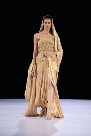 في لقاء نادر بين الشرق والغرب، تتجلّى قمّة الحرفية والفن في تعاون استثنائي بين دار رينيه كاوفيلا الفينيسية العريقة ومصمم الأزياء الهندي الشهير غوراف غوبتا، وذلك ضمن عرض “Quantum Entanglement” خلال أسبوع الزفاف في مومباي.