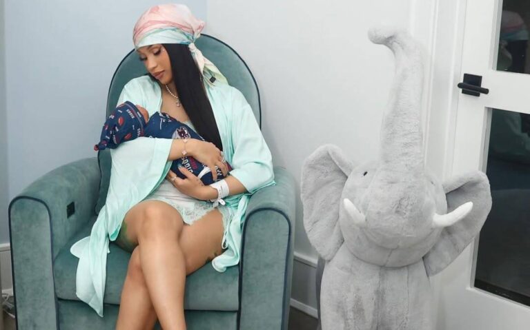 ونشرت كاردي بي عبر &#٨٢٢٠;إنستغرام&#٨٢٢١; صورًا مؤثرة لها وهي تحتضن رضيعها للمرة الأولى في المستشفى، مرتديةً لانجري ساتان باللون الأخضر النعناعي. وأرفقت المنشور بتعليق عبّرت فيه عن فرحتها بالموسم الجديد في حياتها، وقالت: &#٨٢٢٠;جلبتُ طفلاً جديداً إلى عالمي، وسبباً إضافياً لأكون أفضل نسخة من نفسي&#٨٢٢١;.