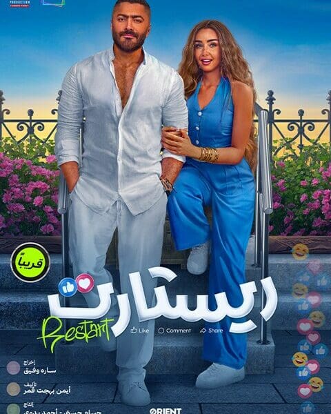 الفيلم من بطولة تامر حسني وهنا الزاهد، ويشاركهما فيه باسم سمرة وعدد كبير من النجوم، ويجمع بين الكوميديا والدراما الاجتماعية بطابع مميز. وشارك الفنان باسم سمرة متابعيه عبر حسابه الرسمي على إنستغرام بمقطع فيديو من أحد مشاهد الفيلم، معلقًا: “كنت بتقول إيه يا بودي.. فيلم ريستارت يُعرض 25 يوليو على يانغو بلاي”.
